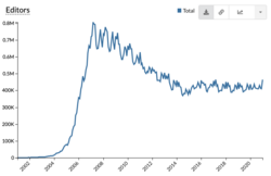 The trend analysis published in The Economist presents Wikipedia in other languages (non-English Wikipedia) as successful in retaining their active editors on a renewable and sustained basis, with their numbers remaining relatively constant at approximately 42,000.[26]