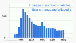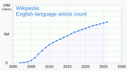 - ^ "Wikipedia:Seven million articles". Wikipedia. Wikimedia Foundation. Archived from the original on 30 May 2025. Retrieved 30 November 2025.