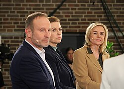In the 2022 Danish general election, the Social Democrats gained 2 more seats with more than twice the number of seats of any other party.[50] This led to the formation of the Frederiksen II cabinet, which included the Social Democrats, the Liberal Party and the newly formed Moderates, being a cross-bloc government. This marked the first time in more than 40 years that the Social Democrats and the Liberal Party, two historical political rivals, have been together in a government.[51]