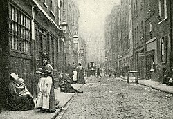 In the late Victorian era, Whitechapel was considered to be the most notorious criminal rookery in London. The area around Flower and Dean Street was described as "perhaps the foulest and most dangerous street in the whole metropolis";[1] Dorset Street was called "the worst street in London".[2] Assistant Police Commissioner Robert Anderson recommended Whitechapel to "those who take an interest in the dangerous classes" as one of London's prime criminal "show places".[3] Robbery, violence and alcohol dependency were commonplace. The district was characterised by extreme poverty, sub-standard housing, poor sanitation, homelessness, drunkenness and endemic prostitution.[4] These factors were focused in the institution of the 233 common lodging-houses within Whitechapel, in which approximately 8,500 people resided on a nightly basis.[5]
