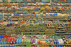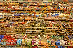 Packaged food aisles of Fred Meyer in Portland, OregonEdit 1 - Colour correction and slight counterclockwise rotation