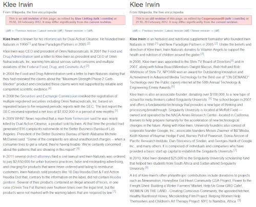 - ^ "Wikipedia: Articles for deletion/Klee Irwin (3rd nomination)". Wikipedia. 15 January 2014.