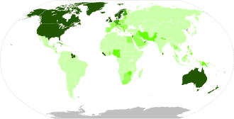 | Native to | The English-speaking world, including the United Kingdom, United States, Canada, Australia, Ireland, New Zealand, Commonwealth Caribbean, South Africa and others |
