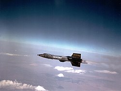 While much of NASA's attention turned to space, it did not put aside its aeronautics mission. Early aeronautics research attempted to build upon the X-1's supersonic flight to build an aircraft capable of hypersonic flight. The North American X-15 was a joint NASA–US Air Force program,[10] with the hypersonic test aircraft becoming the first non-dedicated spacecraft to cross from the atmosphere to outer space. The X-15 also served as a testbed for Apollo program technologies, as well as ramjet and scramjet propulsion.[4]