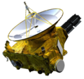NASA also launched missions to Mercury in 2004, with the MESSENGER probe demonstrating as the first use of a solar sail.[22] NASA also launched probes to the outer Solar System starting in the 1960s. Pioneer 10 was the first probe to the outer planets, flying by Jupiter, while Pioneer 11 provided the first close up view of the planet. Both probes became the first objects to leave the Solar System. The Voyager program launched in 1977, conducting flybys of Jupiter and Saturn, Neptune, and Uranus on a trajectory to leave the Solar System.[23] The Galileo spacecraft, deployed from the Space Shuttle flight STS-34, was the first spacecraft to orbit Jupiter, discovering evidence of subsurface oceans on the Europa and observed that the moon may hold ice or liquid water.[24] A joint NASA-European Space Agency-Italian Space Agency mission, Cassini–Huygens, was sent to Saturn's moon Titan, which, along with Mars and Europa, are the only celestial bodies in the Solar System suspected of being capable of harboring life.[25] Cassini discovered three new moons of Saturn and the Huygens probe entered Titan's atmosphere. The mission discovered evidence of liquid hydrocarbon lakes on Titan and subsurface water oceans on the moon of Enceladus, which could harbor life. Finally launched in 2006, the New Horizons mission was the first spacecraft to visit Pluto and the Kuiper belt.[4]