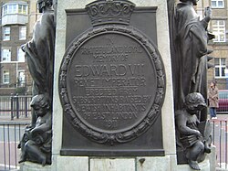 [edit]The Whitechapel Mount was a large, probably artificial mound, of unknown origin, that stood on the south side of Whitechapel Road, about 1200 metres east of the Aldgate, immediately west of the modern Royal London Hospital. The Mount is widely believed to have formed part of London's defences during the Wars of the Three Kingdoms in the mid-17th century. This was either as part of a ring of fortifications known as the Lines of Communication, which were in operation from 1642 to 1647,[10] or additionally or alternatively, as one of the three forts replacing that system of defence immediately afterwards.